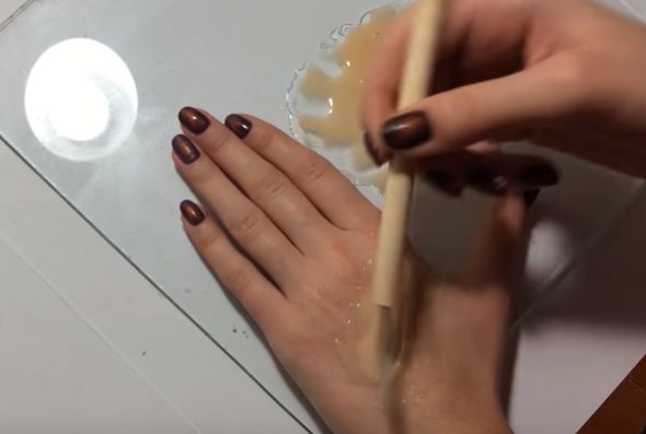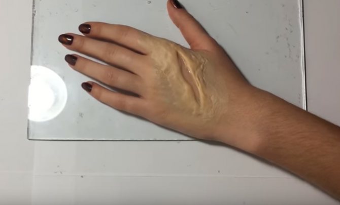 - Valage soe lateks teelusikasse ja valage see käele. Kujundage armi tekstuuri kumeraga. See on palju lihtsam kui sõrmedega, sest koostis on väga kleepuv.
