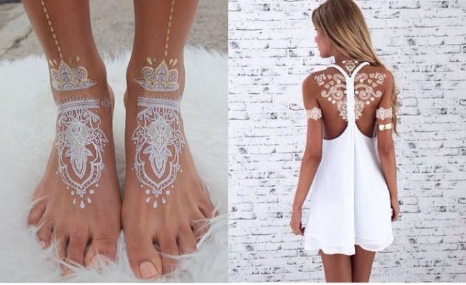 Mehendi ei tehta hennaga, vaid spetsiaalse värviga. See ei kesta kauem kui 5 päeva, nii et see on hea valik, kui soovite lõpetada välimuse tähtsaks sündmuseks. Valget mehendi nimetatakse ka pulmamustriks.