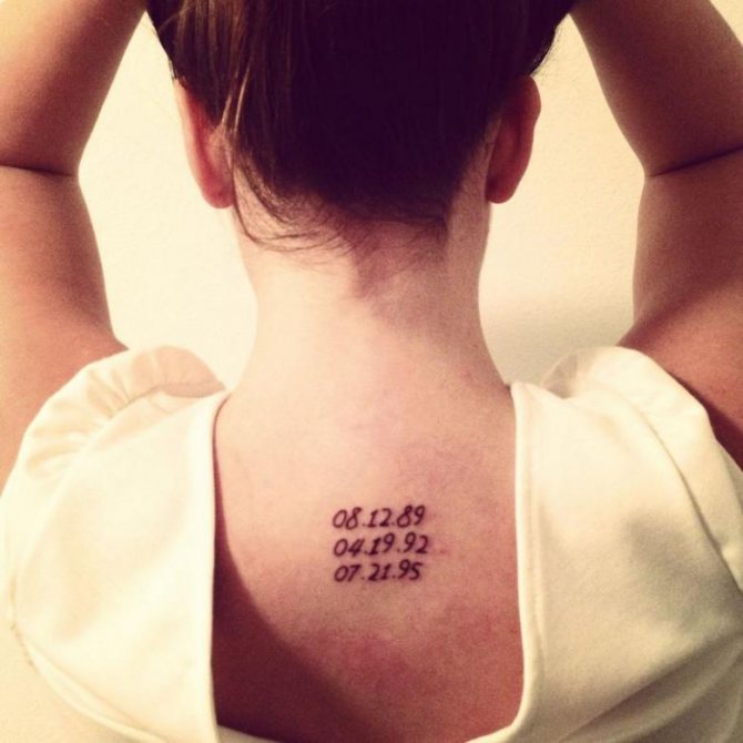 Kui inimene paneb kuupäeva mis tahes kehaosale, annab ta sellele erilise tähenduse. Ainus põhjus selliseks sammuks võib olla soov igaveseks jäädvustada selle hetke tähtsust, et esimesel võimalusel, vaadates tätoveeringut, tuua mällu mineviku episood.