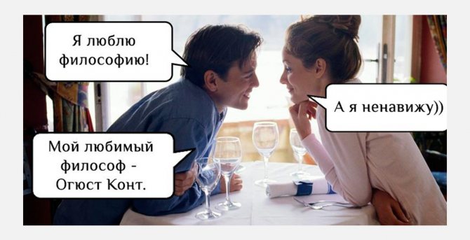 Valitsemalla Auguste Comten, sosiologisen tieteen perustajan, suosikkifilosofiksesi voit helposti löytää yhteisen sävelen tytön kanssa, joka ei ole erityisen kiinnostunut filosofiasta: Comte suhtautui filosofiaan hyvin epäilevästi ja uskoi, että se pitäisi korvata positiivisella tiedolla eli nykyaikaiseen tieteeseen perustuvalla tietämyksellä, joka hänen mielestään voi todella antaa jotakin ihmiskunnalle, toisin kuin filosofia.