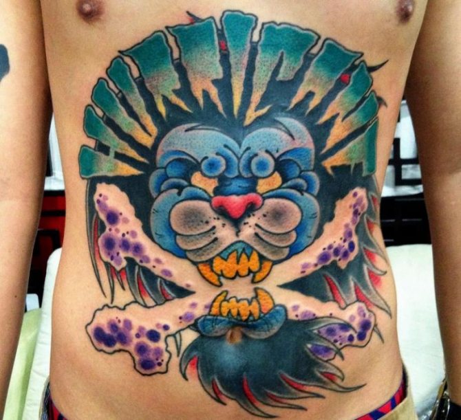 Pantteri - Toisin kuin yleisesti uskotaan, tämä eläin ei ole puhtaasti naisellinen symboli. Se ilmentää vahvuus, itsenäisyys, rohkeus, sinnikkyys, pelottomuus, johtajuus, oveluus, kestävyys. Soturit suosivat mieluummin kuvaa ...kyyhöttävän pantterin...koska se palveli muistutuksena alati läsnä olevasta vaarasta, -Tatuointi miehen kyynärpäässä on muistutus vaaroista, jotka vaanivat.