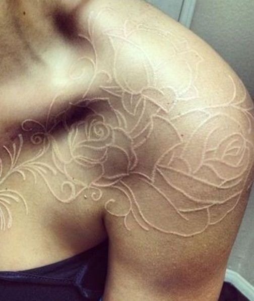 Muuten, jotta tottuisit kuvaan, jotkut saavat tatuoinnit painettua valkoisella maalilla. Joskus tytöt jättävät kuvan mieluummin hillityn valkoiseksi. Tärkeää tietää: valkoiset tatuoinnit tulisi tehdä vain kokeneiden tatuoijien toimesta, muuten ihoon voi jäädä arpia!