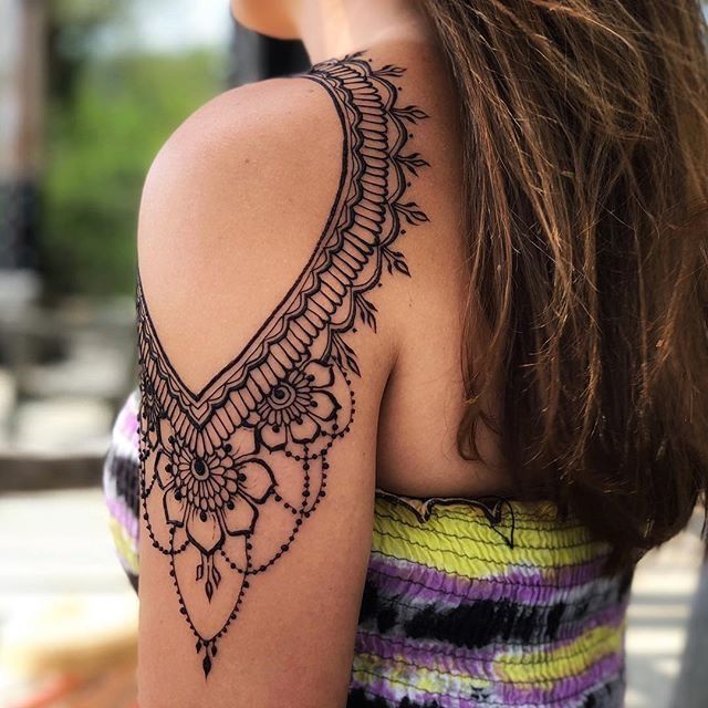 Hennatatuointi olkapäähän antaa varovaiselle tytölle mahdollisuuden kokeilla muotoilua ennen pysyvän tatuoinnin ottamista. Levittämismenettely on turvallinen ja kivuton, ja itse tatuointi voi kestää kehossa jopa kaksi viikkoa, jos siitä huolehditaan asianmukaisesti.
