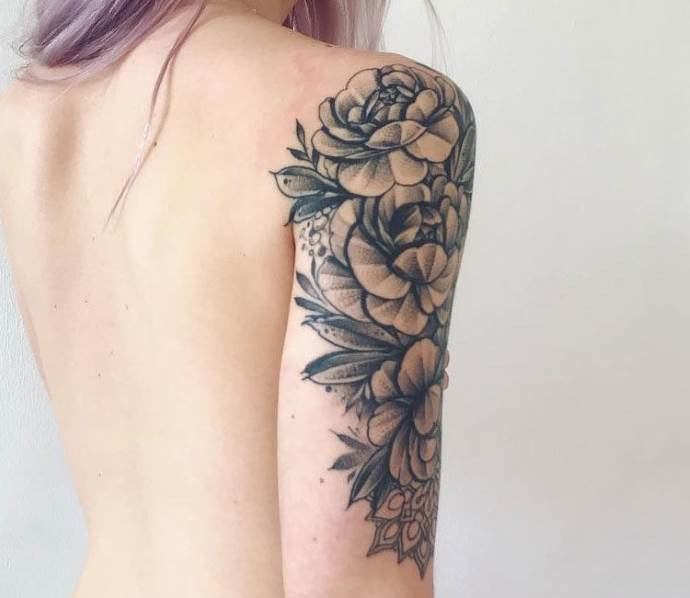 Muodikkaat naisten olkatatuoinnit ovat monipuolisia: ne voivat olla sekä siroja kuvioita että laajamittaisia sävellyksiä koko käsivarteen. Mestarit myöntävät, että tytöistä on tullut vapautuneita ja rohkeita, joten he valitsevat mielellään miespuolisia luonnoksia, jotka kuvaavat petoeläimiä tai työskentelevät biomekaniikan tyyliin.