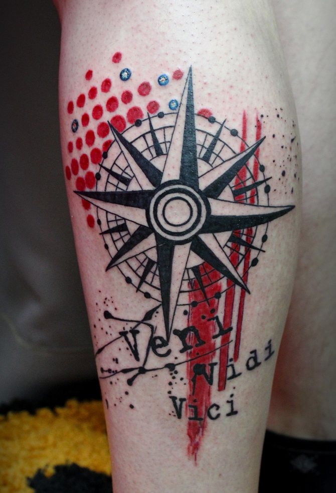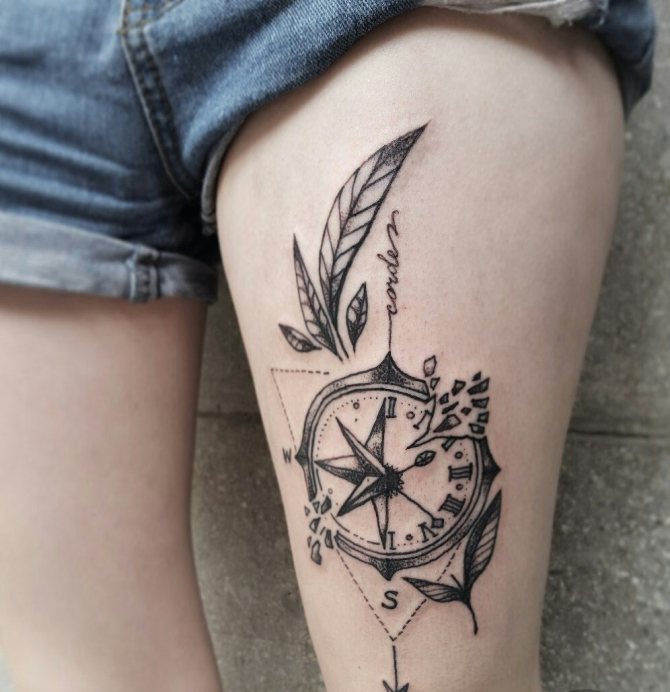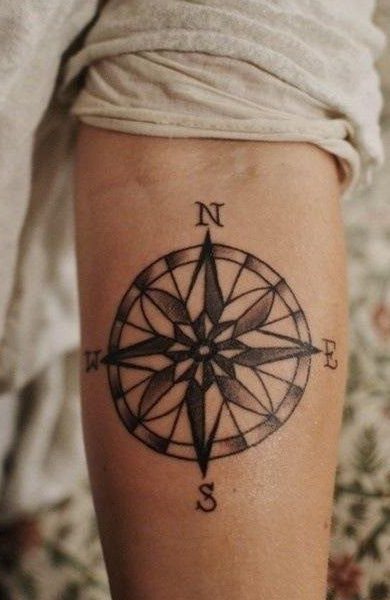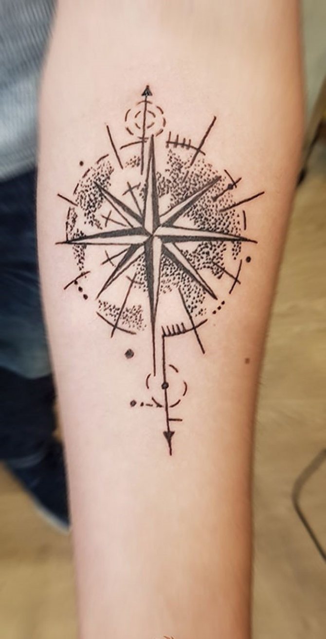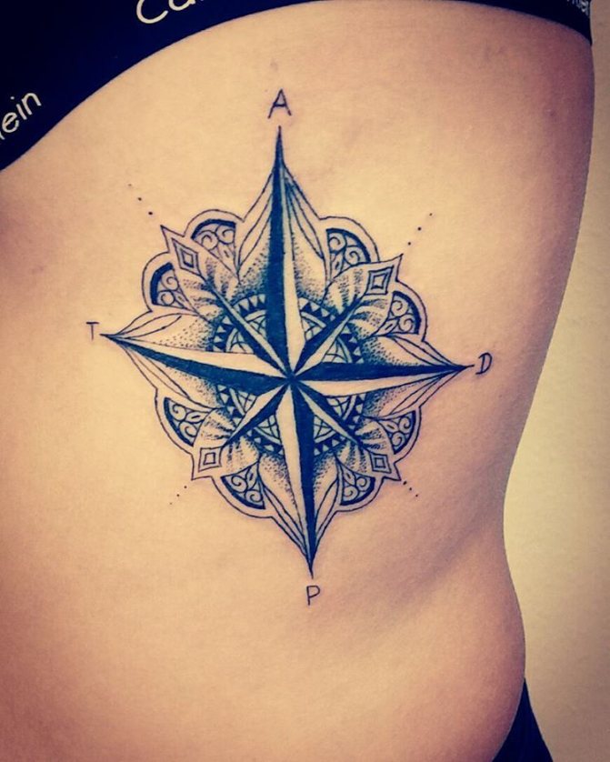 Tatuointi, jossa on tuuliruusun kuva, kertoo omistajansa itsenäisestä luonteesta.