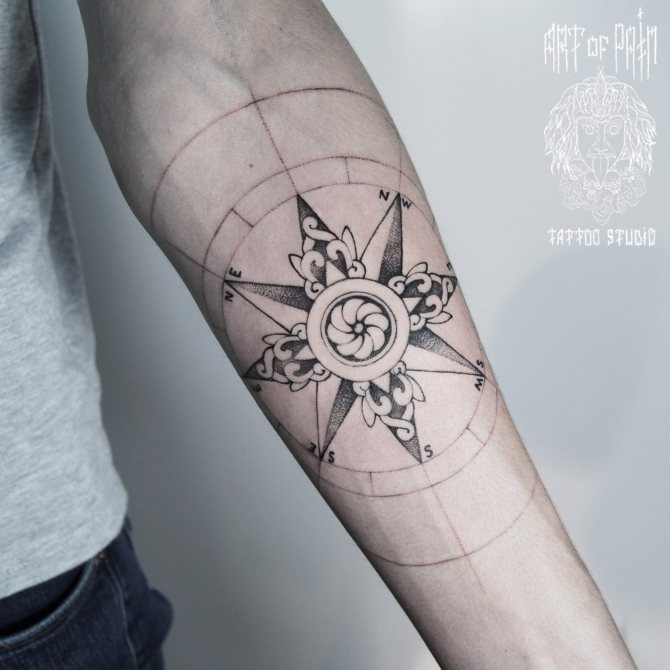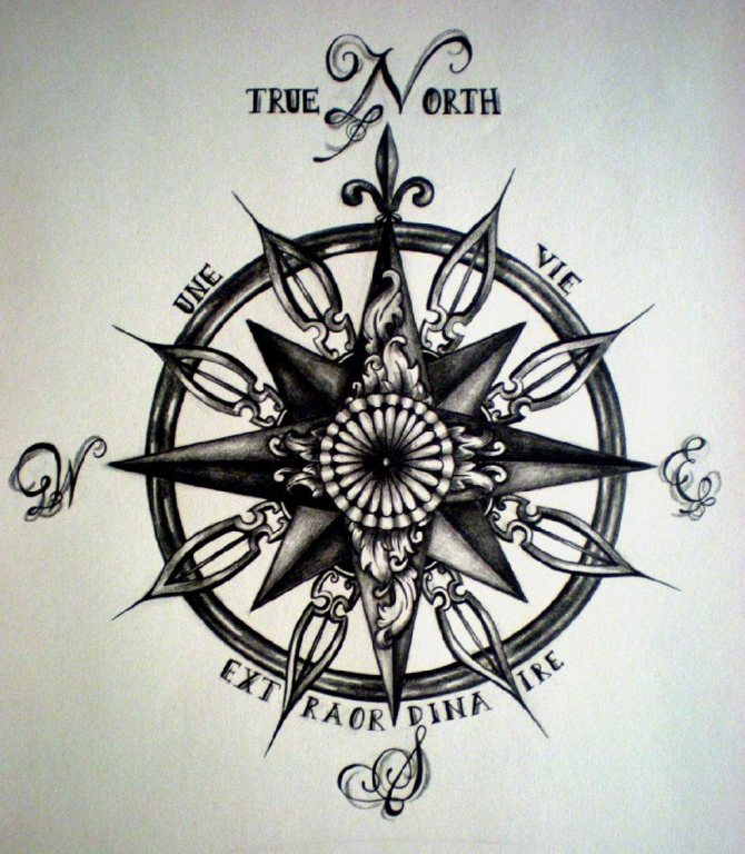 Tatuointi tuulen ruusu: merkitys, luonnokset ja valokuvat valmiista teoksista