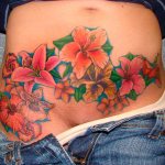 Kukka-aiheet - tatuointien yleinen elementti, joka yhdistyy hyvin nimiin. Tämä tatuointi sopii sekä tytöille että miehille valitusta kukasta riippuen. Esimerkiksi orvokki, sakura, lumikello tai narsissi sopivat paremmin tytöille, mutta ruusu näyttää hyvältä miehen vartalolla yhdessä nimen kanssa.