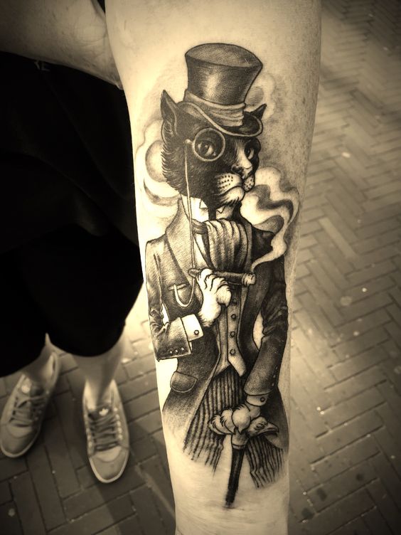 Kissa, ketterä ja lihaksikas - yhteinen teema miesten tatuointien luonnoksille, jotka kuvaavat luonnollista voimaa, kestävyyttä. Piirustukset ovat hillittyjä, graafisia, usein yksivärisiä. Nämä kehonkoristeet valitsevat urheilijat, matkailijat, ulkoilmaihmiset - kissojen kyky navigoida helposti missä tahansa tilanteessa on erittäin arvokas ominaisuus, jonka ihmiset haluavat omaksua.
