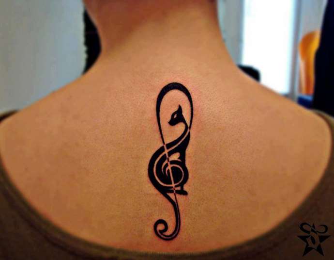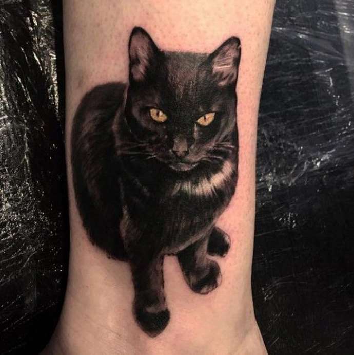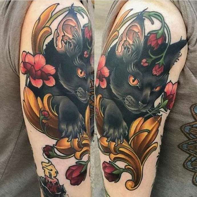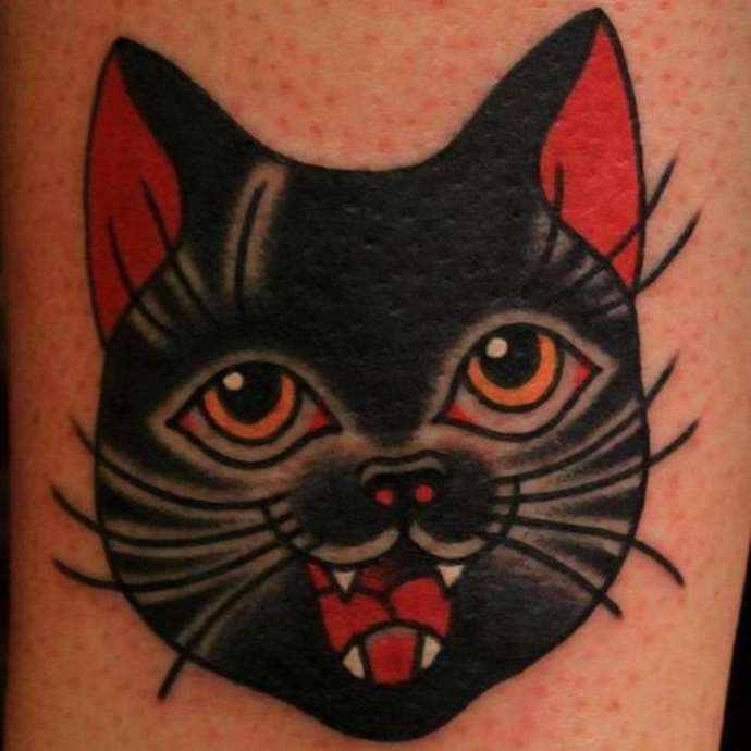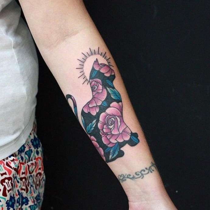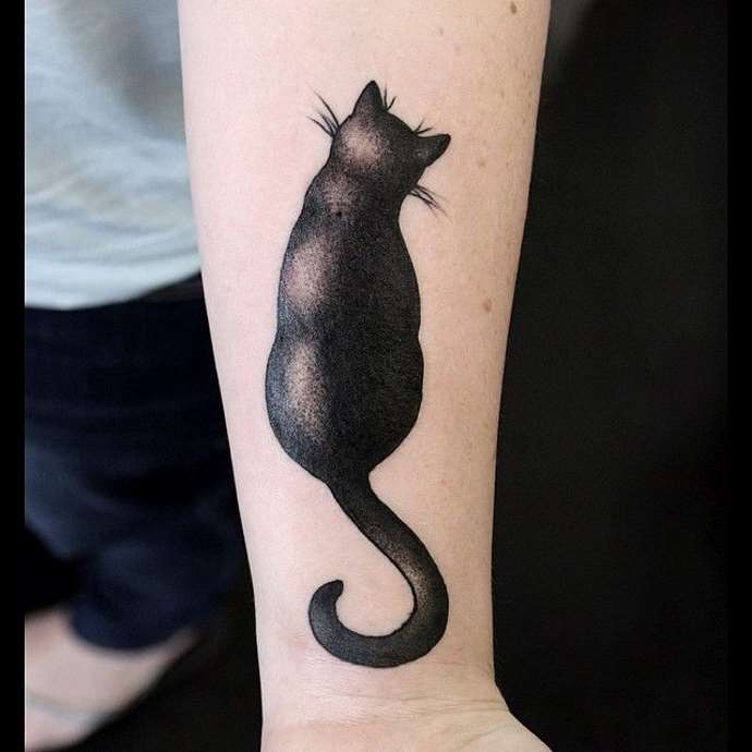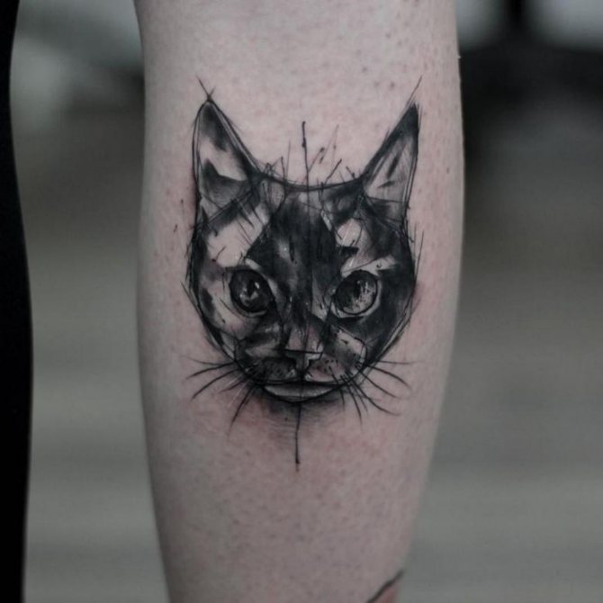 Hieman psykedeelinen, mutta luovan näköinen vesiväritatuointi, joka muistuttaa taiteilijan työtä. Mustan kissan siluetti näyttää myös tyylikkäältä minimalismin tekniikassa. Tyylille on ominaista yksityiskohtien puute - kaikki on yksinkertaista, ytimekästä ja samalla kaunista. Pienet tatuoinnit on parasta tehdä ranteeseen, kaulaan ja kyynärvarteen. Korosta naisellisuutta ja armoa auttaa tatuointi vatsaan, selkään ja säären alaosaan. Nuoremmat ihmiset voisivat harkita new skool- tai old skool -tyyliä sarjakuvamaisella kuvalla.