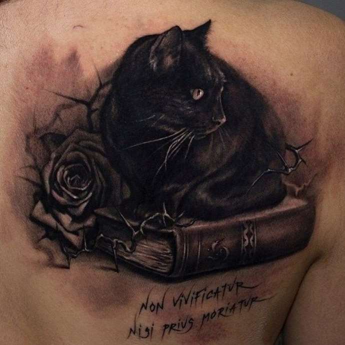 Tatuointikohteeksi valittu mustan värinen eläin merkitsee yleensä piilotettuja salaisuuksia, yöllisiä pimeitä asioita ja maagisia arvoituksia. Musta kissa kuvataan usein kuuta vasten, koska sitä ei näe pimeässä. Rikkauden talismaanina mustan kissan tatuoinnit tehdään suuren onnen toivossa, sillä muinaisella Venäjällä uskottiin, että musta kissa auttoi löytämään leikkaamattoman ruplan, kolikon, joka palaisi aina omistajalleen.