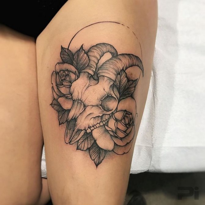 Kuva, jossa kallon päällä on kruunu, on yleisin tällaisista tatuointimalleista. Myös suosittuja luonnoksia voidaan kutsua: vuohen kallo, härkä, pässi, intialainen, kallo, jossa on siivet, baretti.