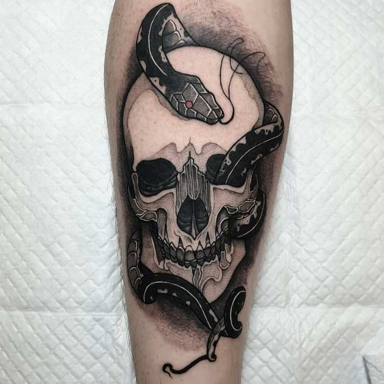 Kallon tatuointi jalassa