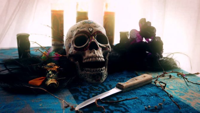 - kosketuksiin kuolleiden ihmisten kanssa mustan magian rituaalien suorittamiseksi;
