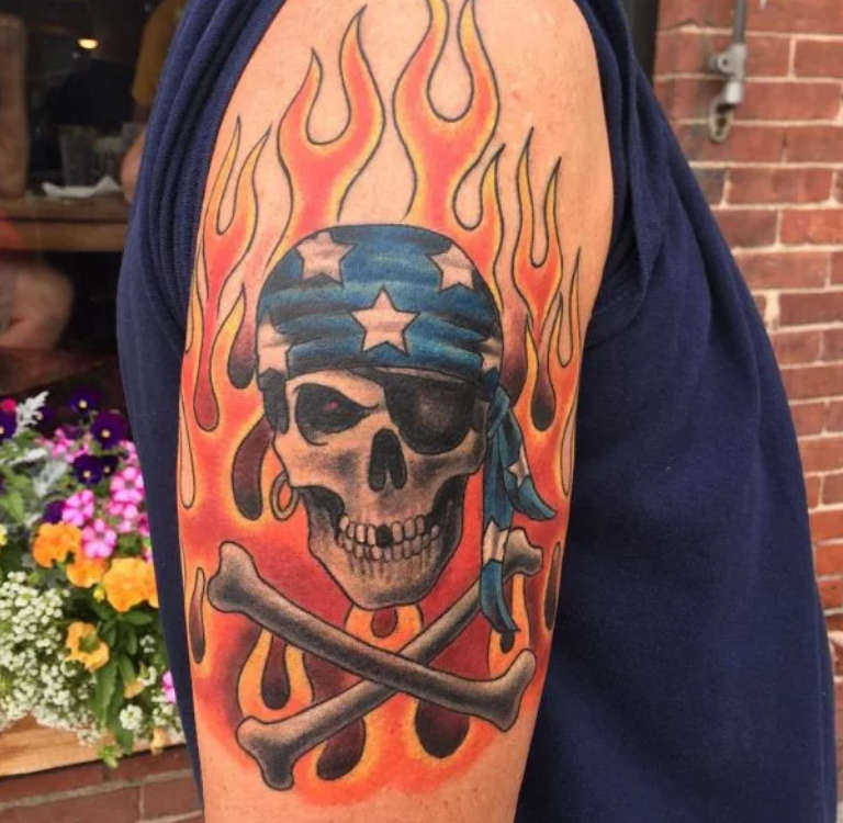 Moottoripyöräilijät pitävät pääkalloa merkkinä kuolemalta suojautumisesta, joten kuva voidaan nähdä paitsi tatuointina myös vaatteissa tai itse pyörässä. Sen alla oleva pääkallo on merirosvomerkki. Sitä käyttävät usein ihmiset, jotka ovat istuneet vankilassa varkaudesta tai huijaamisesta. Se oli ennen rosvoukseen, irstailuun ja ryöstelyyn liittyvien ihmisten tavaramerkki.