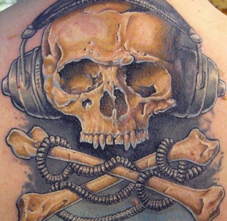 Rohkein ja pelottavin työ. Tällaisten tatuointien omistajat haluavat symbolisesti korostaa omaa raivoa ja aggressiivisesti suuntautuneita luonteenpiirteitään. Tämä kuva on yleinen rikollismaailmassa, ja se merkitsee verivihaa vihollista vastaan. Mutta jo aiemmin tällaisia motiiveja käytettiin rohkeiden merirosvojen ruumiissa, jotka eivät pelänneet kohdata kuolemaa.