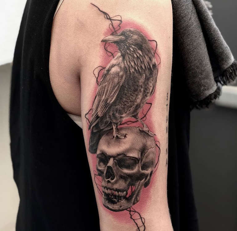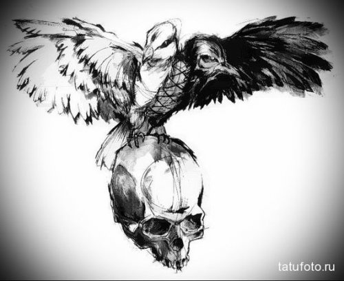 - Jos päätät kuvata pääkallon korpin kanssa, varo, tällainen tatuointi tuo vain tuhoa ja pettymystä. Se on todellakin kuoleman ja vaaran symboli.