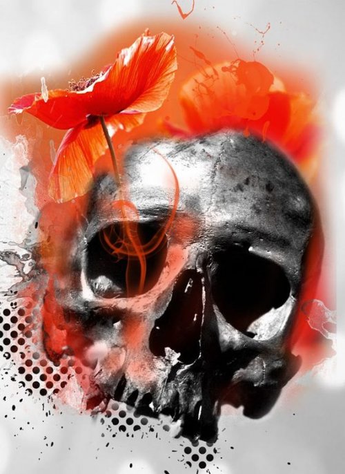 - lisäelementit - Pelkkä pääkallo saattaa olla vähän vaikuttava, joten täydennä sitä sopivilla hahmoilla, symboleilla ja yksityiskohdilla;
