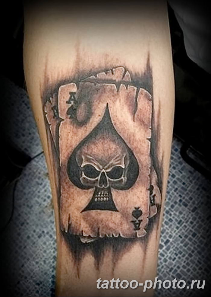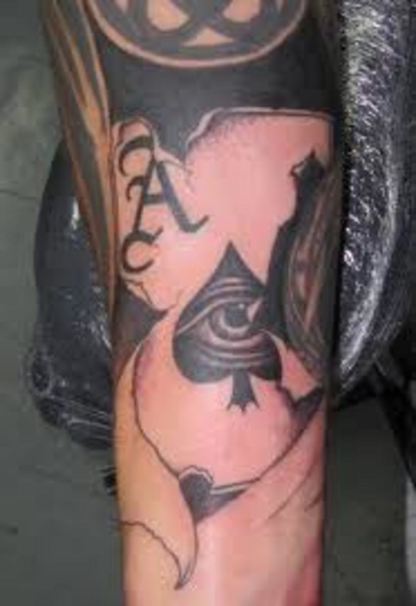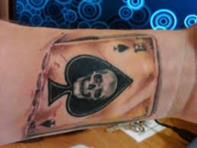 - Yleisin tatuointi on pata-ässä -pelikortti. Tämä kortti voidaan tehdä myös eri tavoin. Joissakin malleissa on kuvattu asioita kortin keskellä tai pääkallo. Niitä näytetään usein myös muiden pelikorttien kanssa, kuten esimerkiksi kuninkaallisessa värissä - tässä tatuoinnissa on mukana kuningas, kuningatar, jätkä ja pata 10. Muut korttiyhdistelmät ovat yleisiä.