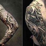 - Heimo-, steampunk- ja biomekaniikkatyylien yhdistelmä - näillä tekniikoilla tehty tatuointi näyttää realistiselta ja usein hieman pelottavalta, jos oletetaan, että pentagrammi on osa ihmiskehoa.