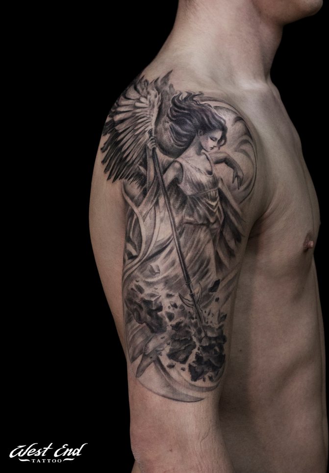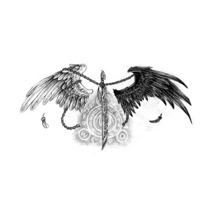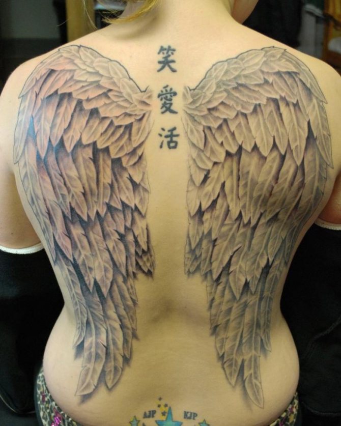 Selkään tatuoiduilla siivillä on moniselitteinen merkitys. Suunnittelu liittyy enkeleihin, ja tatuoinnin tekniikka ja värit määrittelevät hahmon olemuksen: enkelin hyvän tai pahan ulkonäön.
