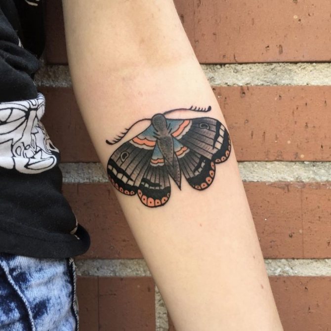 Jotkut tytöt koristavat kyynärvarren söpöllä, värikkäällä linnun kuvalla. Tällainen muotoilu osoittaa sielun naiiviutta ja nuorekkuutta.