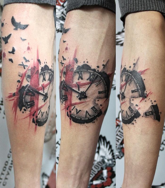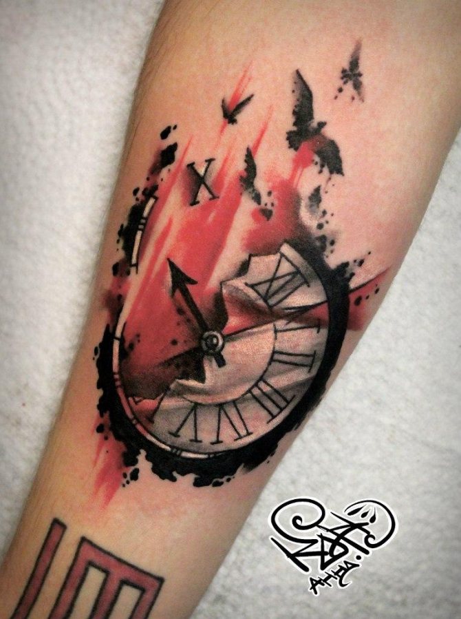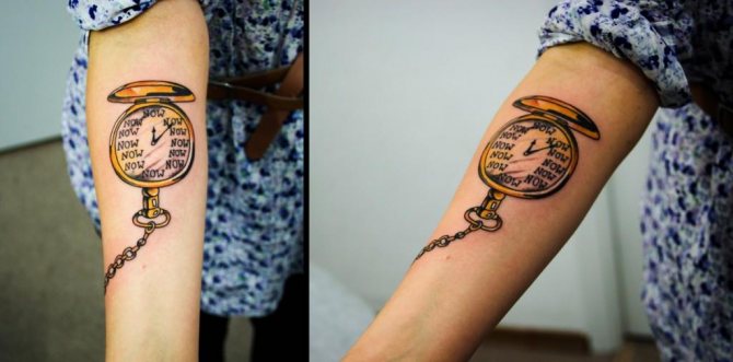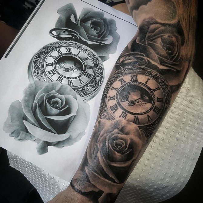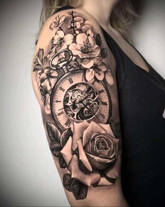Tatuointisalongin asiakkaat pyytävät 70 prosentissa tapauksista roomalaisia nimityksiä. Myös takana olevat kellokuvat ovat kysyttyjä. Lisävarusteen sisäinen mekanismi on piirretty. Tämä on symboli siitä, että ajalla on myös tietty laite. Tärkeintä on ymmärtää tämä laite, ymmärtää se.