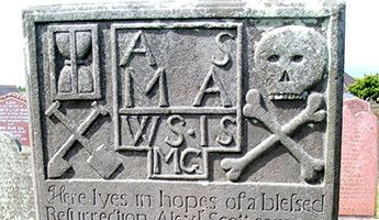 Kuoleman ja maanpäällisen olemassaolon lyhyyden symbolina tiimalasi on usein nähty muistomerkissä.