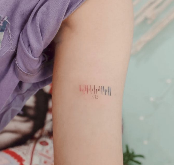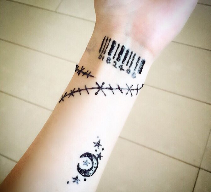 Viivakoodi on loistava vaihtoehto itseilmaisuun tatuoinnilla. Tyylikäs muotoilu, kuten "musta neliö", kätkee sisäänsä filosofista syvyyttä ja olemisen todellisuutta. Tatuointi sopii sekä pojille että tytöille.