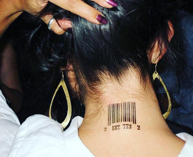 - Tatuointi viivakoodi kaulassa ja muissa tavallisissa paikoissa liian tylsää, ja se tuntuu melko tylsältä.