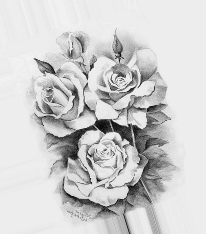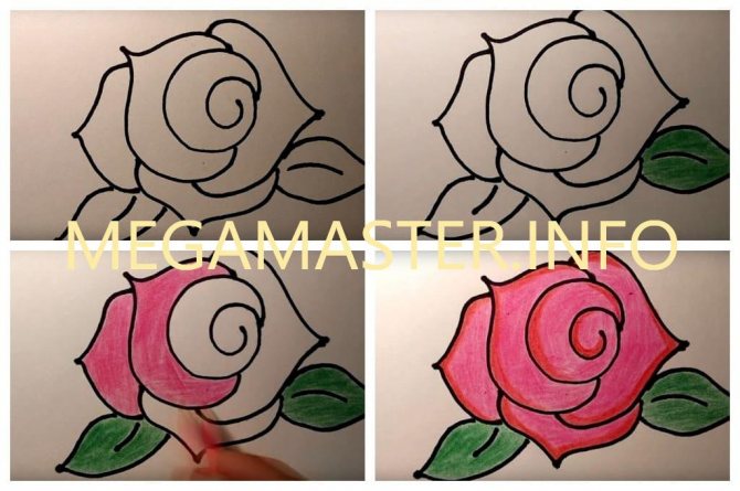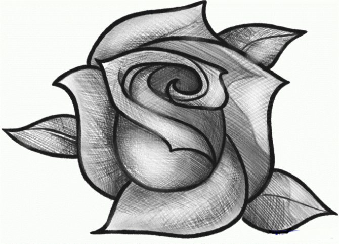 A rózsa - a rajz ceruzával történő festése, lépésről lépésre