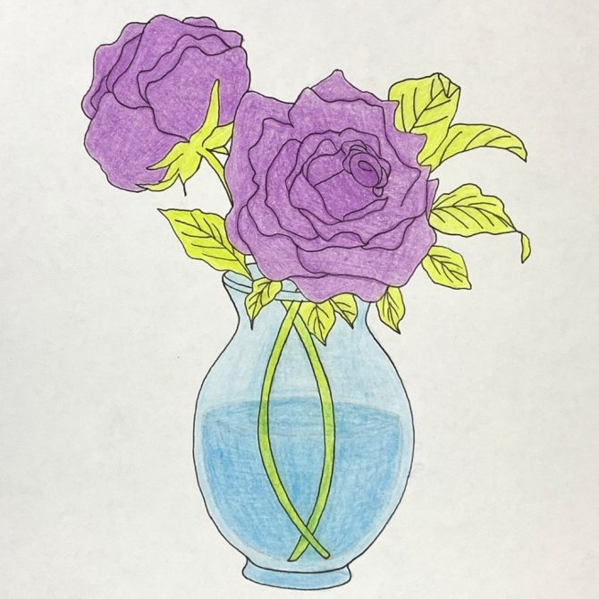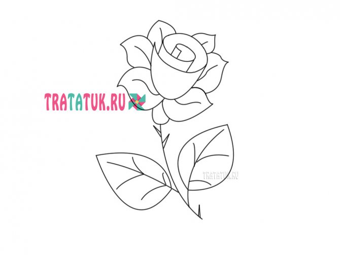 Óvatosan színezze ki. A rózsa rajza készen van.