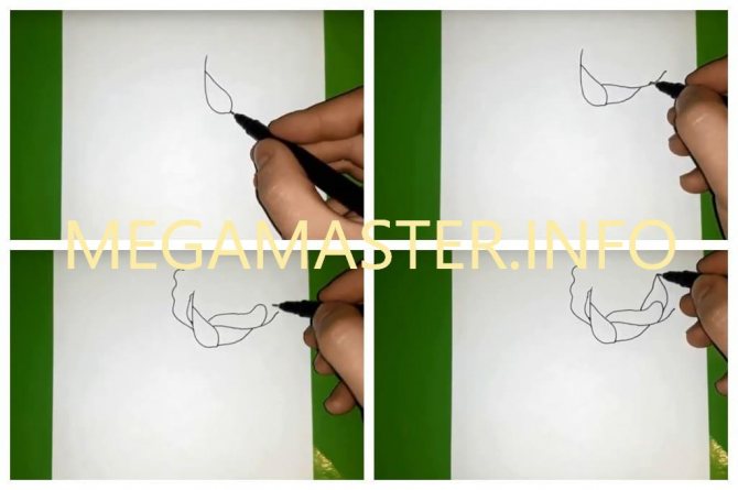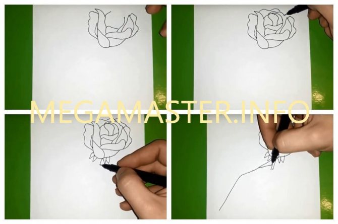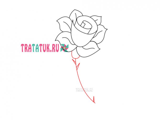 - Most meg kell rajzolnod a szárat. Miközben csak a tetejét ábrázolja. A rügy alján egy kis háromszög alakú levelek és rövid csíkok levonható a szár.
