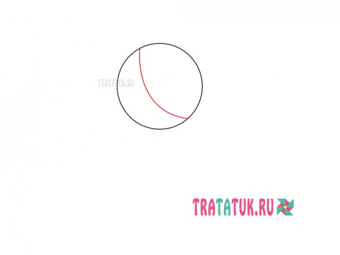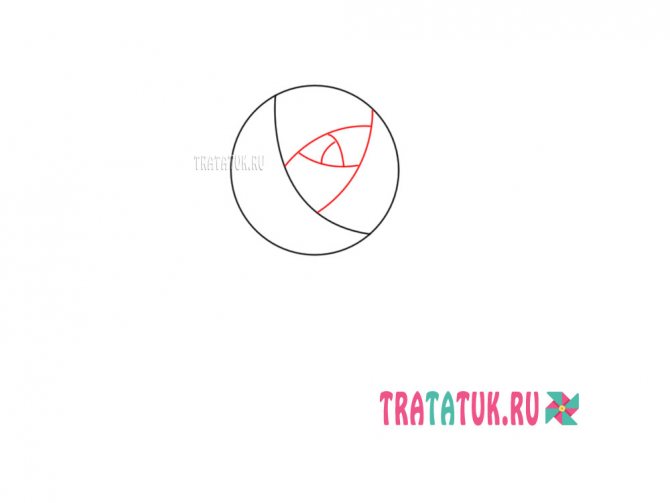 Az ívből rajzolj még két ívet, az egyiket a kör ellentétes oldalára, a másikat pedig egy kicsit rövidebbre. Az ívek közepén adjunk hozzá 3 vonalat, amelyek a virág szívét alkotják.