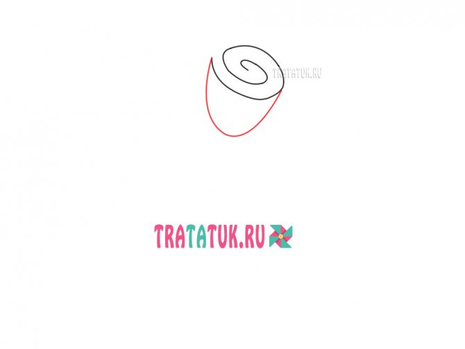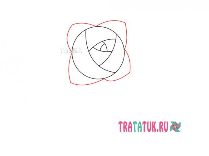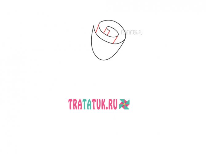 - Először is rajzoljuk meg magát a rózsát. Képzelj el egy cseppet, amelynek hegyes vége felfelé mutat. Egy kis szegmens sarkától felfelé.