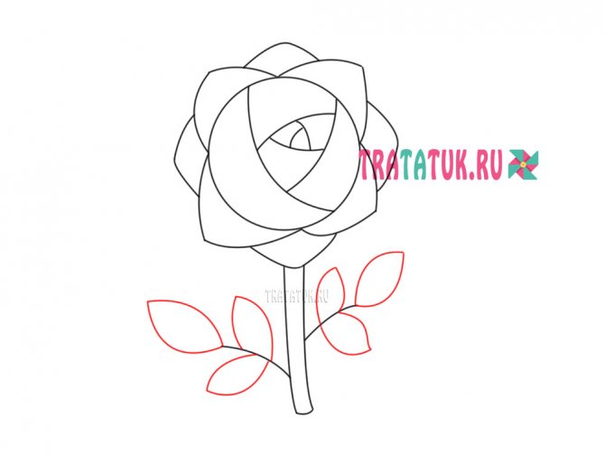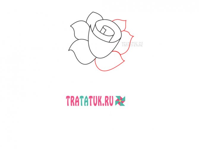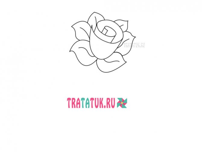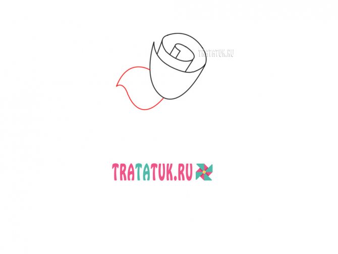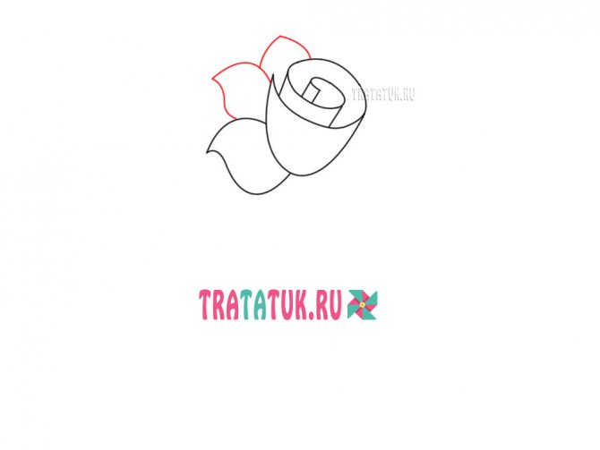 Itt a rózsa még nem rajzolódott ki, inkább rózsabimbó. Kicsit nehezebb rajzolni, mint az előző lehetőségeket, mert nincs határozott minta. Csak figyelned kell az akciót, és megpróbálnod kell megismételni, ahogy a képen látható.