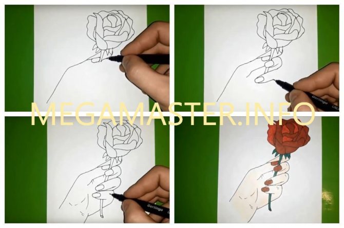 - Rajzolj egy rózsát tartó kezet. Balról lentről kezdjünk el egy hosszú csíkot vezetni, a virág felé lejtve.