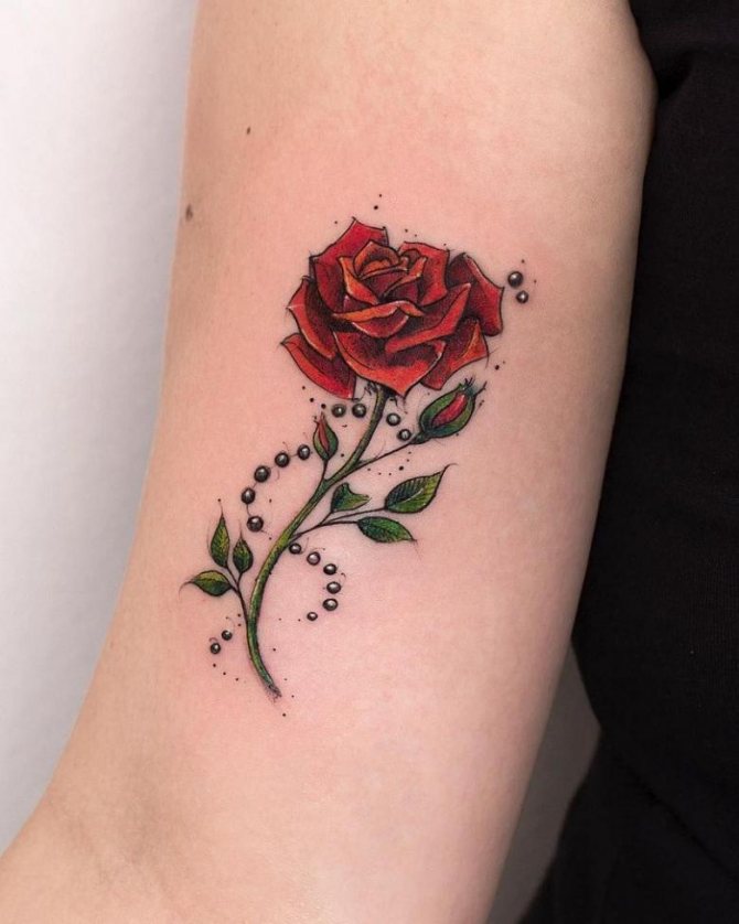 A rózsa a tetoválás klasszikus értelmezésében szerelmet és szenvedélyt jelent. De nem minden olyan konkrét és határozott. Az, hogy a művész milyen módon ábrázolja a virágot, nagy szerepet játszik. Emiatt a tetoválás következő jelentései mutatkoznak meg: