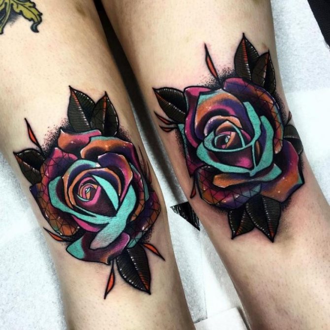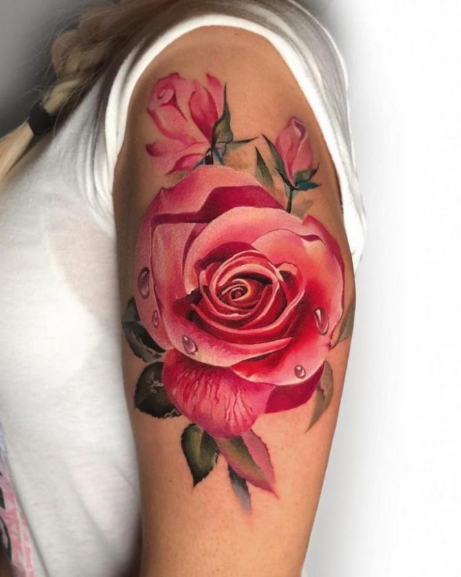 A rózsák rendkívül természetesnek és kifejezőnek tűnnek. Ez a design a hatás érdekében készült. Az örökséghez, a megszokott értékekhez való ragaszkodás az Old School stílusban rögzül. Ezt a típust a tengerészek használták. Mindenféle kreatív hajlam népszerű. Gyakran használnak geometrikus és szürrealista típusokat. A legbrutálisabb törzsi és fekete munkát a férfiak kedvelik. Itt a fekete pigment fontos szerepet játszik, anélkül, hogy megváltoztatná a jelentést.