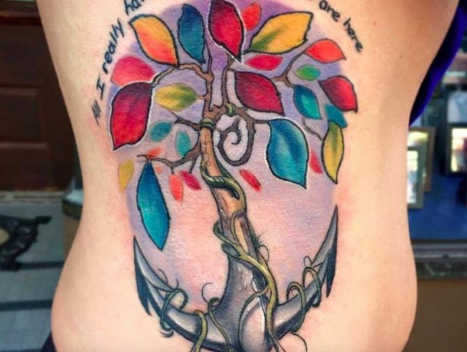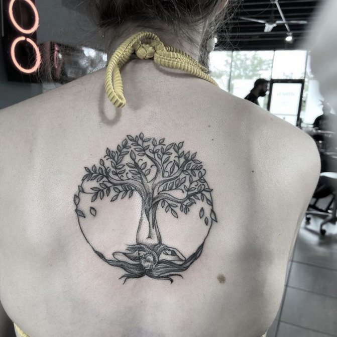A fa szimbolikus jelentése a testen a véget nem érő növekedés és fejlődés, valamint az ember önfejlesztésre és a világ minden elemével való kapcsolatra való törekvésének szimbóluma. Ezenkívül a fa a termékenységet, sőt a halhatatlanságot is szimbolizálhatja. Ebben az esetben rendkívül fontos, hogy a növényt milyen módon ábrázolják.
