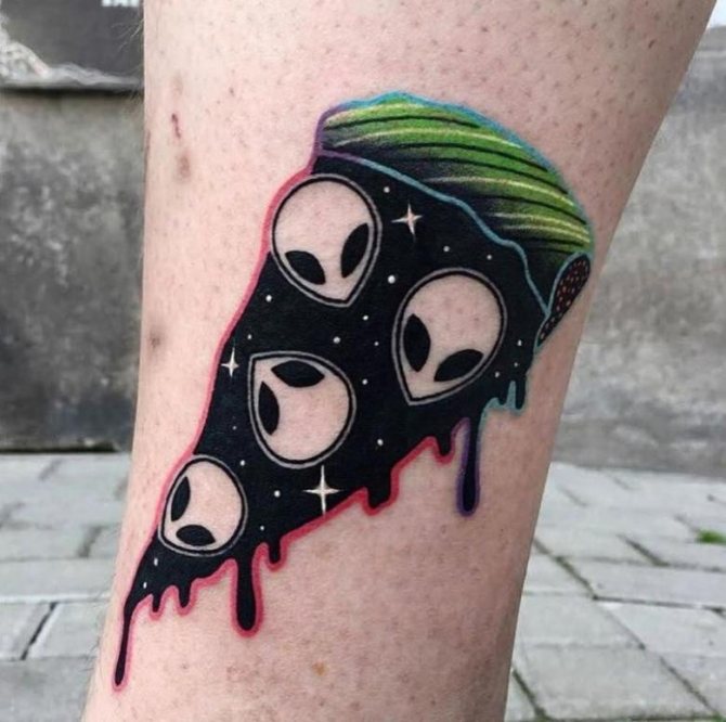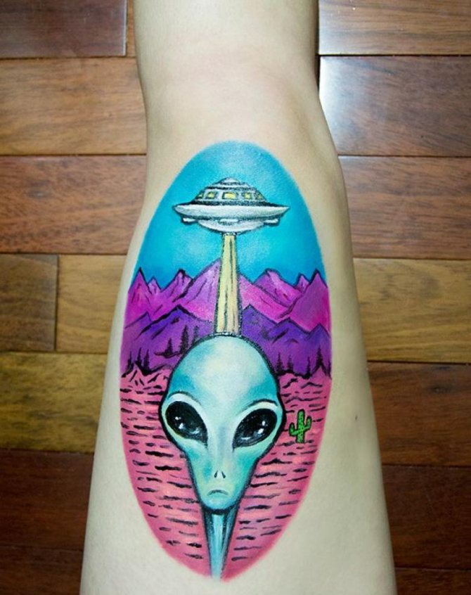 Az idegeneket ábrázoló tetoválások szintén népszerűek a sci-fi műfaj rajongói körében. Az idegenek és minden, ami velük kapcsolatos, az egyik legnépszerűbb téma a világon. Sok író figyelmeztetett már az idegenek inváziójának jelenségére. Az ilyen történetek kimenetele a jóindulatútól a legtragikusabbig terjed.