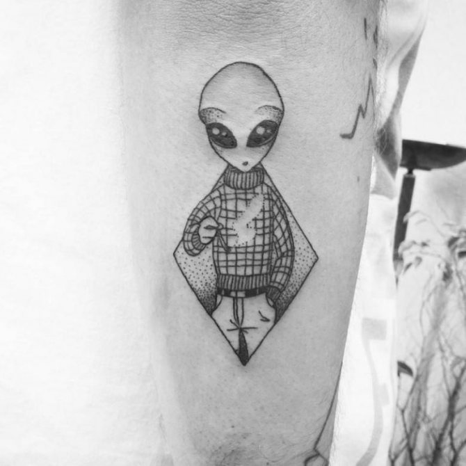 Mivel a földönkívüliek túlvilági lények, egy ilyen tetoválás viselőjéről elmondható, hogy a megszokottól eltérő személyiség. Egy egyszerű halandó biztosan nem róla szól.
