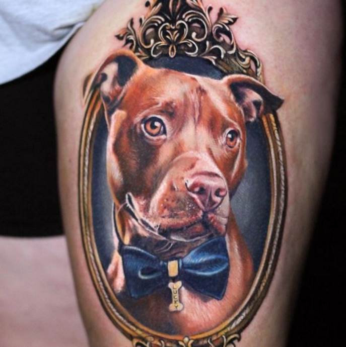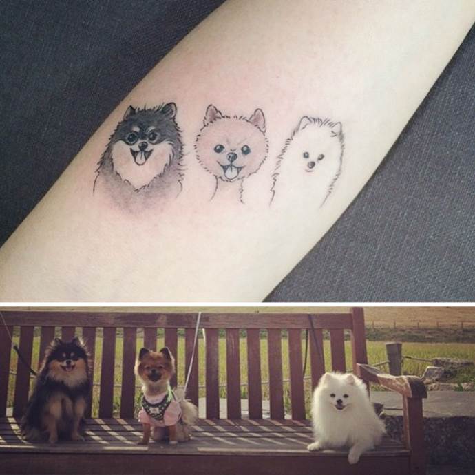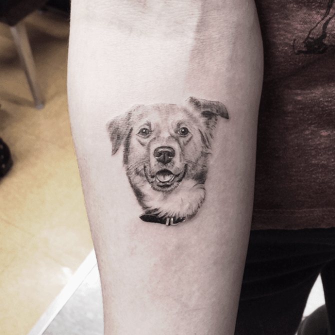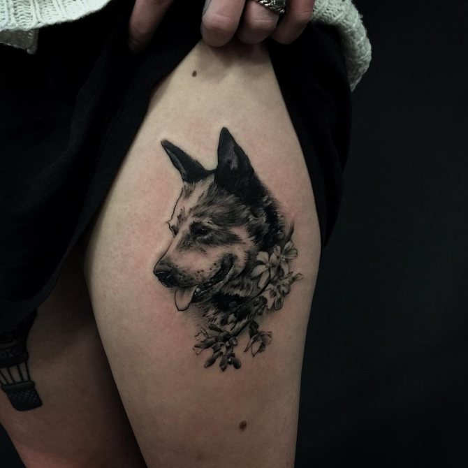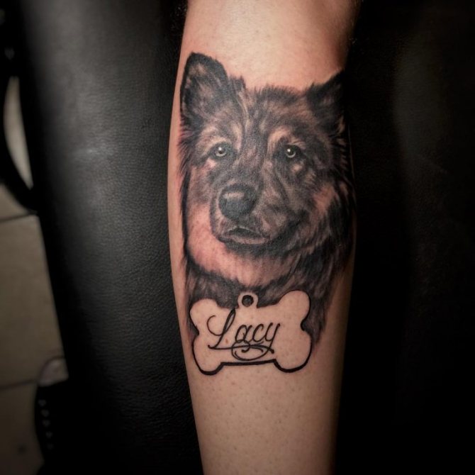 Általános szabály, hogy a nagy kutyafajták képe 3D stílusban, a test háromdimenziós részeire vonatkozik: hát, váll, láb, mellkas. A lányok a diszkrétebb, gyakran grafikus mintát kedvelik a csuklón, a kulcscsonton vagy a lábszáron a csont felett.