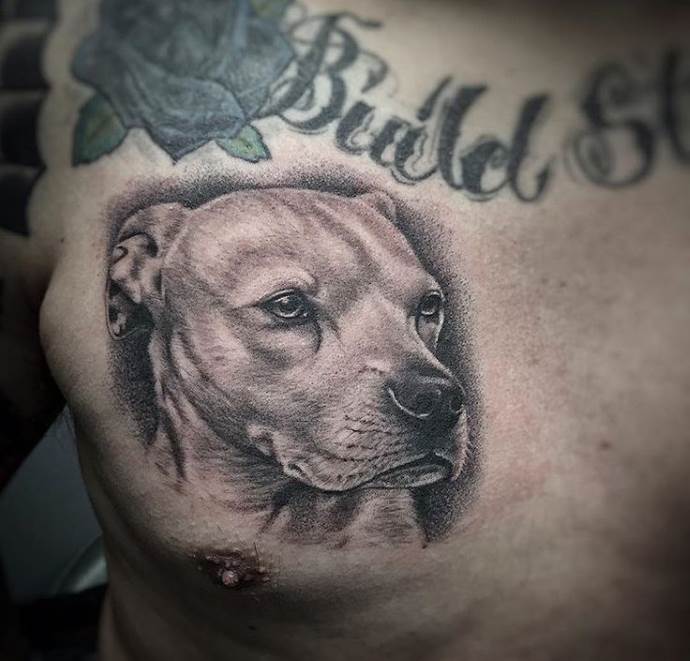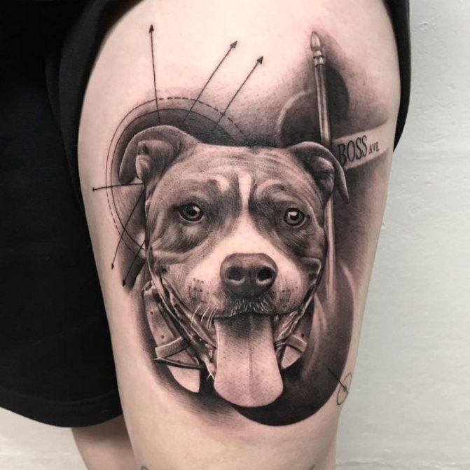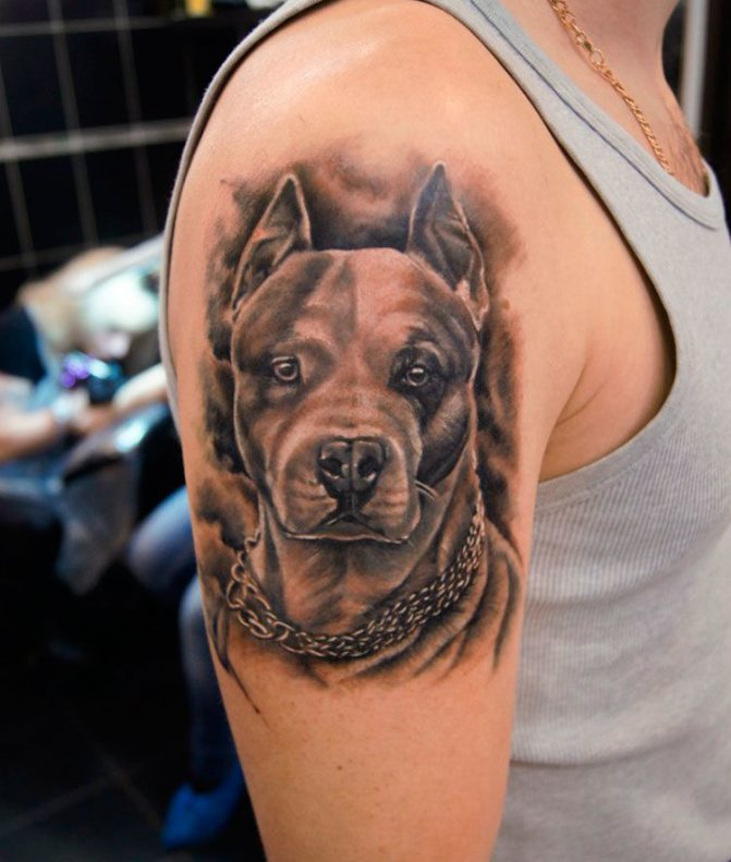 - Pit Bull - egy ilyen tetoválás tulajdonosának nagy fizikai és szellemi erővel kell rendelkeznie. Ez is egy népszerű kép azok körében, akiknek ez a kutyafajta a tulajdonukban van. A vázlat kiválasztásakor előnyben kell részesíteni a kutya teljes képét és a fejének képét is. Ha a kutya rajzfilm stílusban van ábrázolva, a tetoválás a személy kedvességét és őszinteségét, valamint a háziállat iránti szeretetét jelzi.