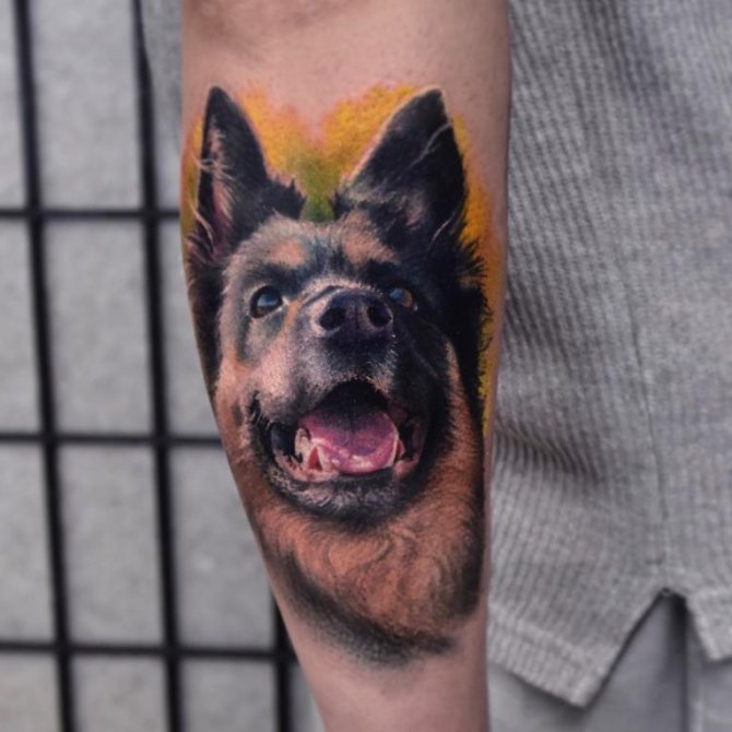 A német az egyik legnépszerűbb tetoválás. Intelligens és barátságos fajta, amely bátorságban és hűségben sem szenved hiányt. Mivel a német juhászkutya egyfajta házőrző, az arculata "védelmet" jelent. A kutya karaktere is értelmezi a kép különböző jelentéseit. Egy juhászkutyáról például elmondható, hogy agresszív, egy barátságos kinézetűről viszont, hogy barátságos és mindig segítőkész.