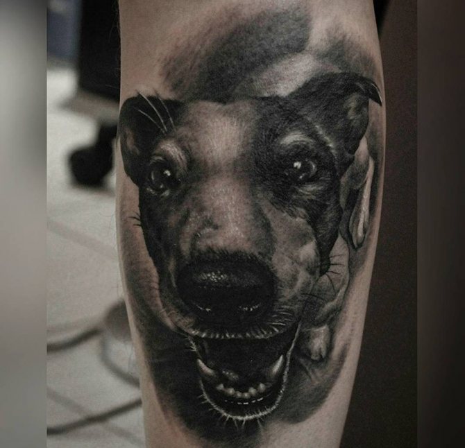Az állatokkal készült tetoválások nagyon szépek a realizmus technikájában. A stílus a legapróbb részleteket és árnyalatokat is közvetíti. A 3D tetoválások nagyszerű lehetőség azok számára, akik szeretnek meglepni másokat. Vázlat egy tetoválás egy kutyával olyan természetesnek tűnik, hogy a kép és meg akarja érinteni a kezét, hogy biztos legyen a létezésében. A nagyméretű tetoválást férfiaknál a vállon, a karon, a háton vagy a mellkason érdemes alkalmazni.