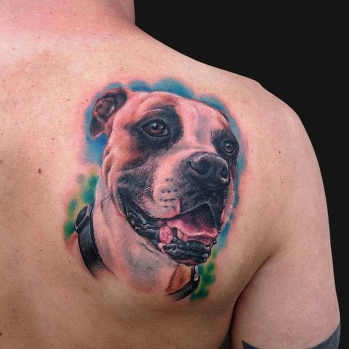 Egy-két szó a helyszínekről. A mellkas és a vállak ideálisak a kutya fejének törzs nélküli ábrázolásához. Az ilyen tetoválások jól néznek ki egy régimódi változatban. Ha egy kutya teljes értékű képéről van szó, a hát vagy a has lehet jó választás. Itt nyugodtan kísérletezhet különböző stílusokkal.