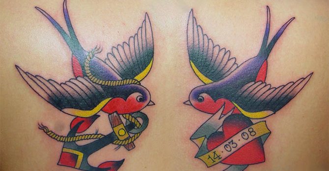 A fiatal srácok szeretik a szabadság és a lélek erejét egy fecske képében megfogalmazni. Ezeket a madarakat nyitott szárnyakkal, repülés közben ábrázolják.