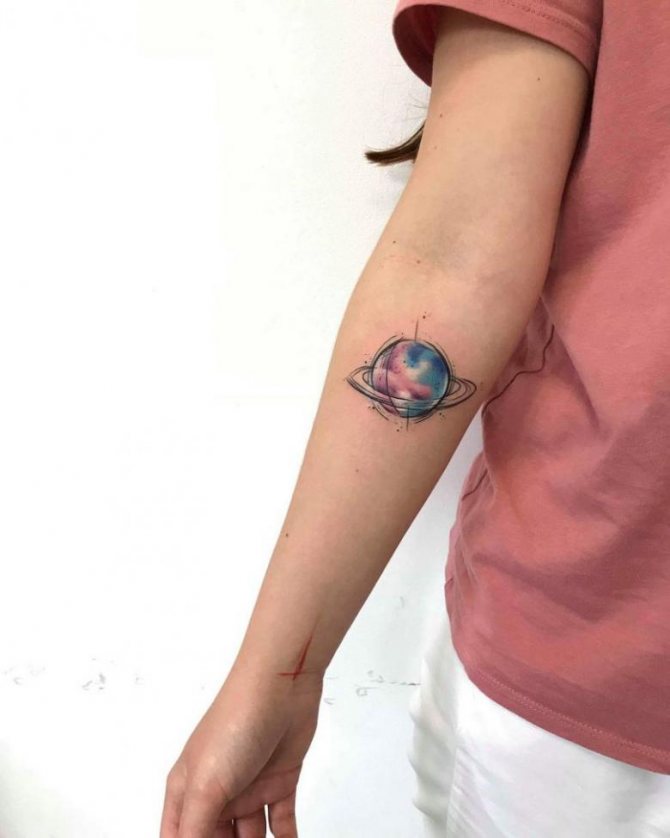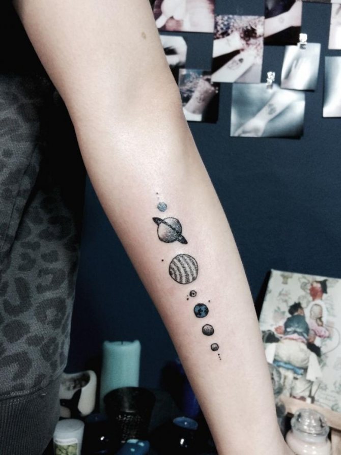 A bolygó tetoválás jelentése a titokzatossággal, az ismeretlennel, a titokzatossággal és bizonyos tudományok szeretetével kapcsolatos.