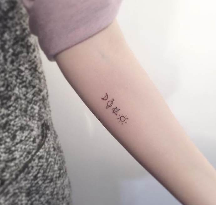 Ez a motívum a harmóniát, a képzeletet és az energiát szimbolizálja. Általában a bolygókat vagy a háton vagy az alkaron írják fel.