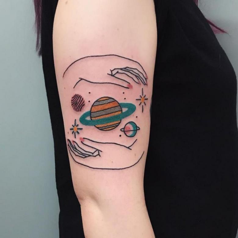 A bolygó tetoválás mintákat azok az emberek választhatják, akik szeretnék másoknak is megmutatni a csillagászat iránti szeretetüket.